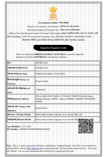 Shreeji Global Ventures is a trusted supplier, trader, and exporter of high-quality products from India. We take pride in our commitment to delivering excellence and building long-lasting relationships with our customers. Our focus on integrity ensures that you can trust us for all your business needs.