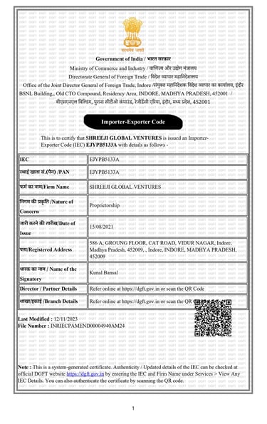 At Shreeji Global Ventures, we are dedicated to providing exceptional products and services to our customers. We strive for excellence in every aspect of our business, ensuring that our clients receive the highest quality products from India. With a strong focus on integrity, we build long-lasting relationships based on trust and mutual respect.